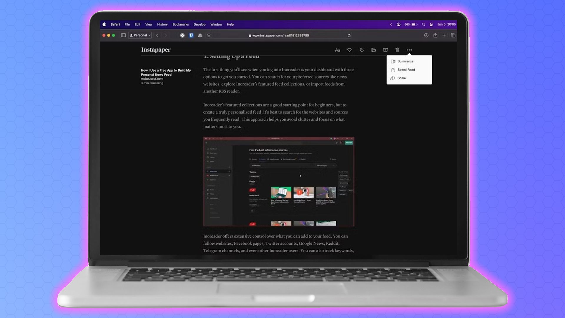 Instapaper has established itself as one of the leading read-it-later applications, having been in the market for over a decade. It is compatible with various platforms, including the web, iOS, Android, and macOS. Users can save unlimited articles, web pages, and videos for future consumption. Furthermore, Instapaper allows users to organize their saved content into folders for easier accessibility.